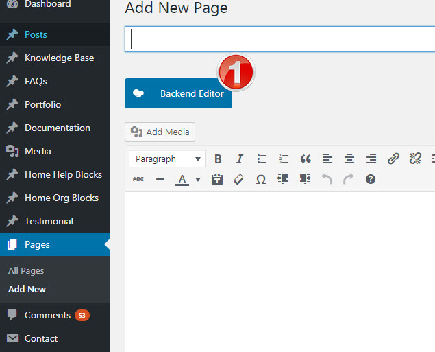 1. Go to «Pages > Add New» and click on the «Backend Editor»