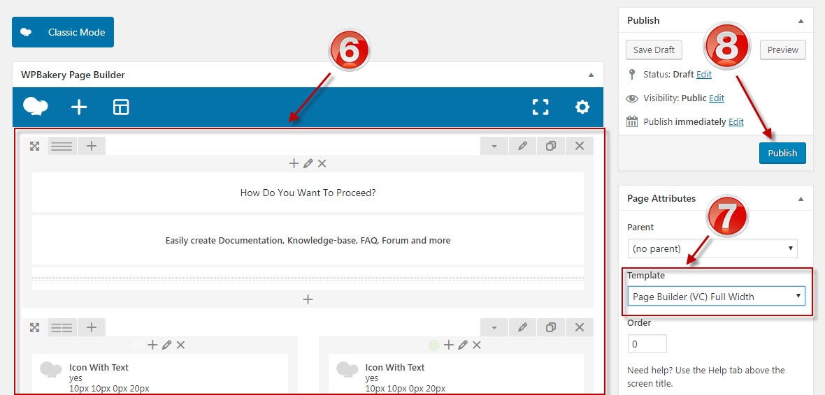 7. Make sure page template «Page Builder (VC) Full Width» is selected.