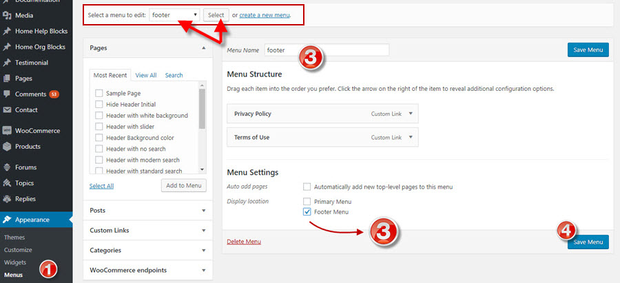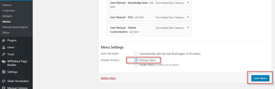 After DONE importing data please go to «Appearance > Menus» and save menu for the footer and header.